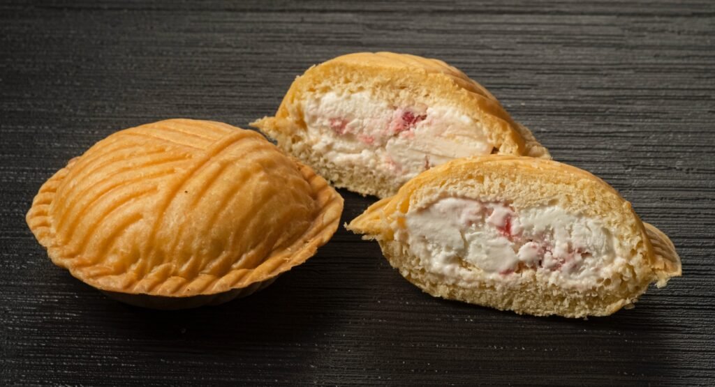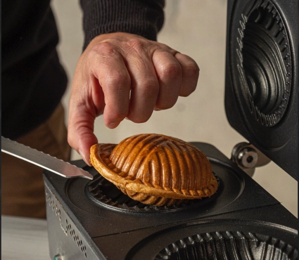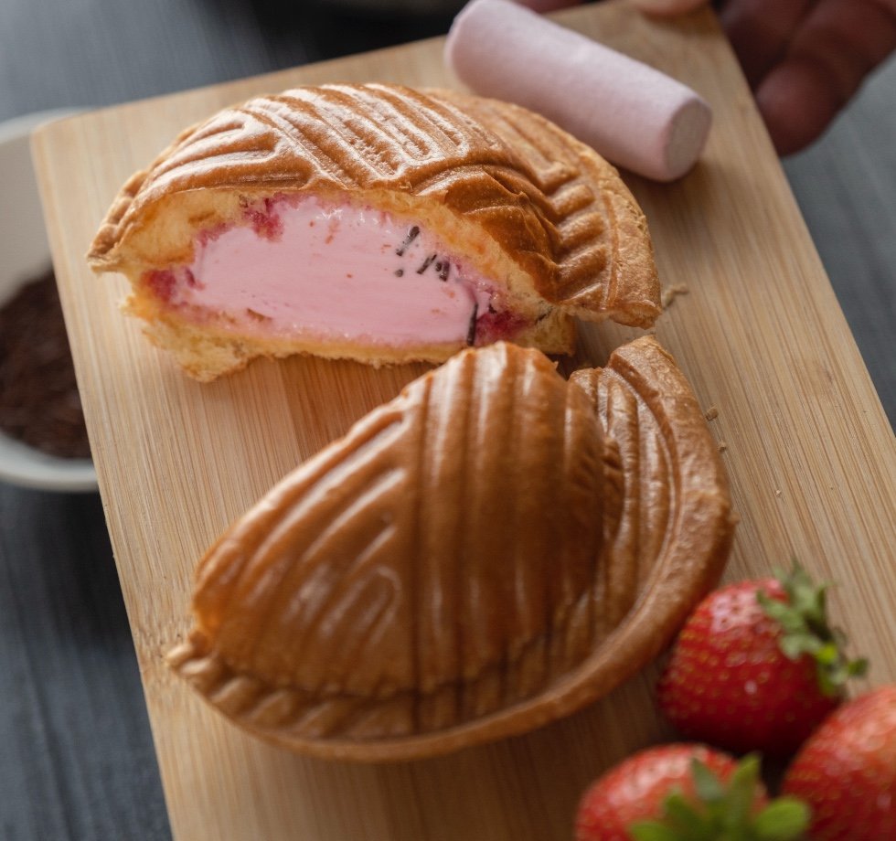 Unsere weiche Brioche wird frisch im Waffeleisen zusammengepresst. Dadurch wird sie außen warm und leicht knusprig und bildet die perfekte Hülle für das Eis im Inneren.