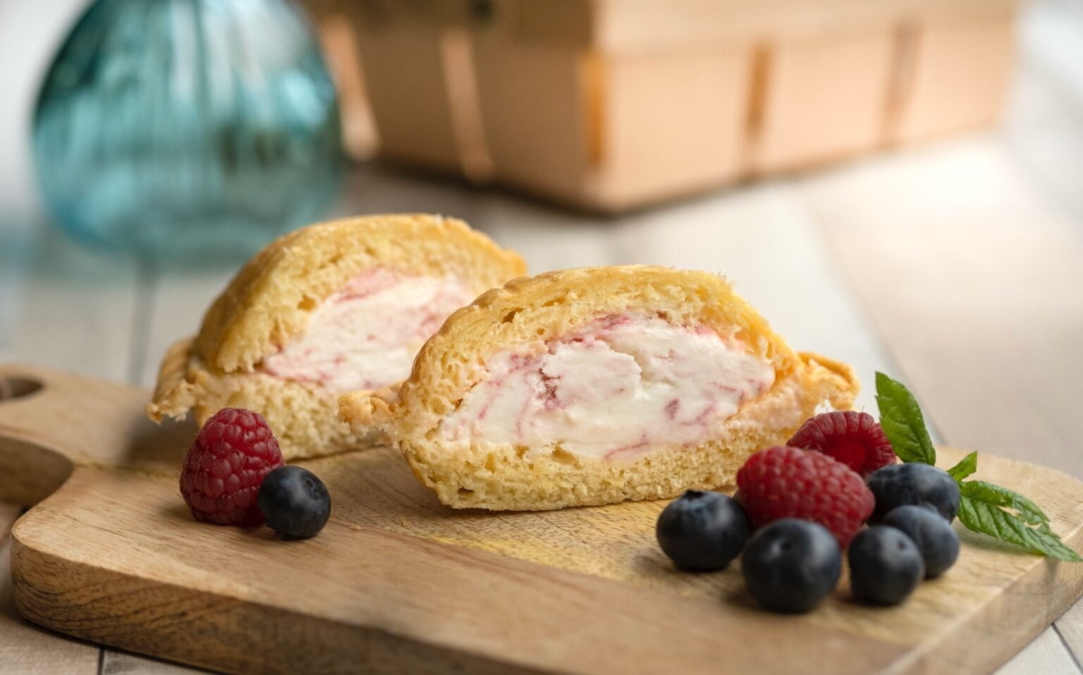 Im Inneren befindet sich eine Eiskugel nach Wahl aus unseren beliebten Sorten. Während die Brioche warm wird, bleibt das Eis angenehm eiskalt.